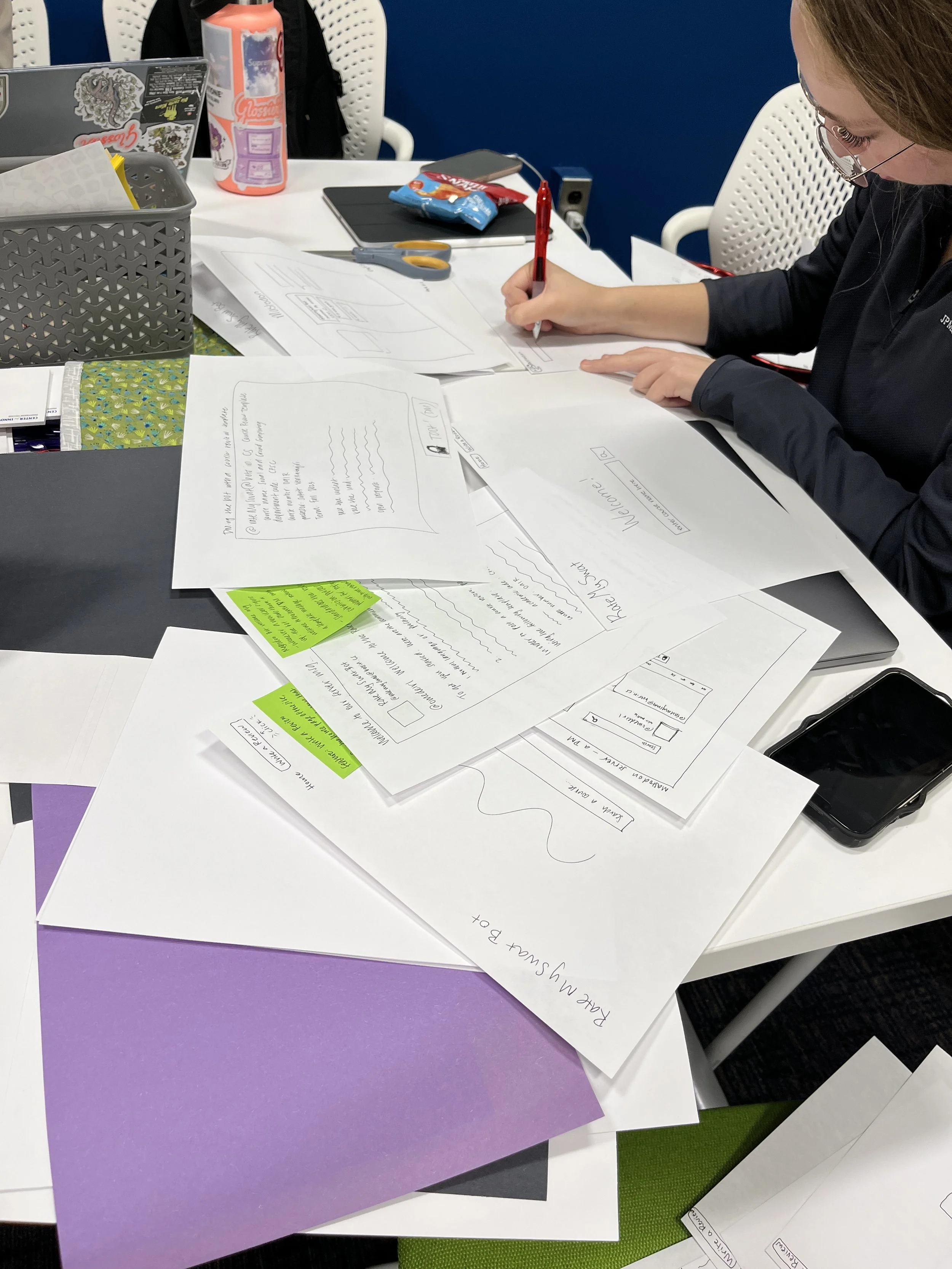 Testing: We conducted usability tests with a group of Swarthmore students to gather feedback on the prototype and iterate on the design.